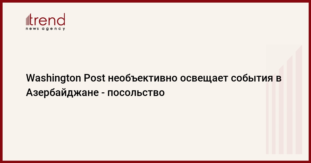 БАКУ /Trend/ - Освещение происходящих в Азербайджане событий в том виде, в котором оно осуществляется американской газетой Washington Post, не отражает ни широко признанных успехов страны, ни крепких партнерских азербайджано-американских отношений. Об этом говорится в статье советника посольства Азербайджана в США Мамеда Талыбова, опубликованной в этой же газете.