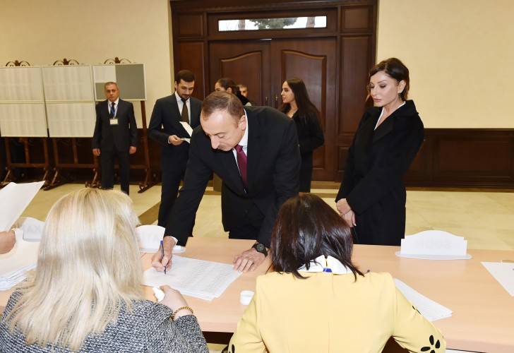 23 декабря в 10 часов утра Президент Азербайджана Ильхам Алиев вместе с супругой Мехрибан Алиевой и членами семьи пришли на избирательный участок.