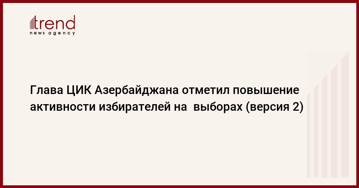 БАКУ /Trend/ - В Азербайджане наблюдается более высокая активность избирателей по сравнению с предыдущими муниципальными выборами. Об этом во вторник сказал журналистам после участия в голосовании председатель Центральной избирательной комиссии (ЦИК) Мазахир Панахов.
