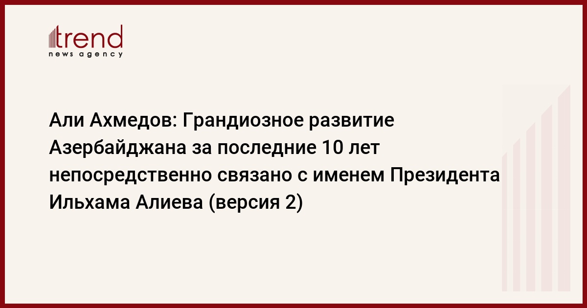"За этот период азербайджанская экономика выросла втрое. В мировой истории не было такой страны, экономика которой выросла втрое за такой короткий период. За эти годы Азербайджан полностью преобразился. Страна переживает грандиозный период модернизации, развития", - сказал Али Ахмедов.