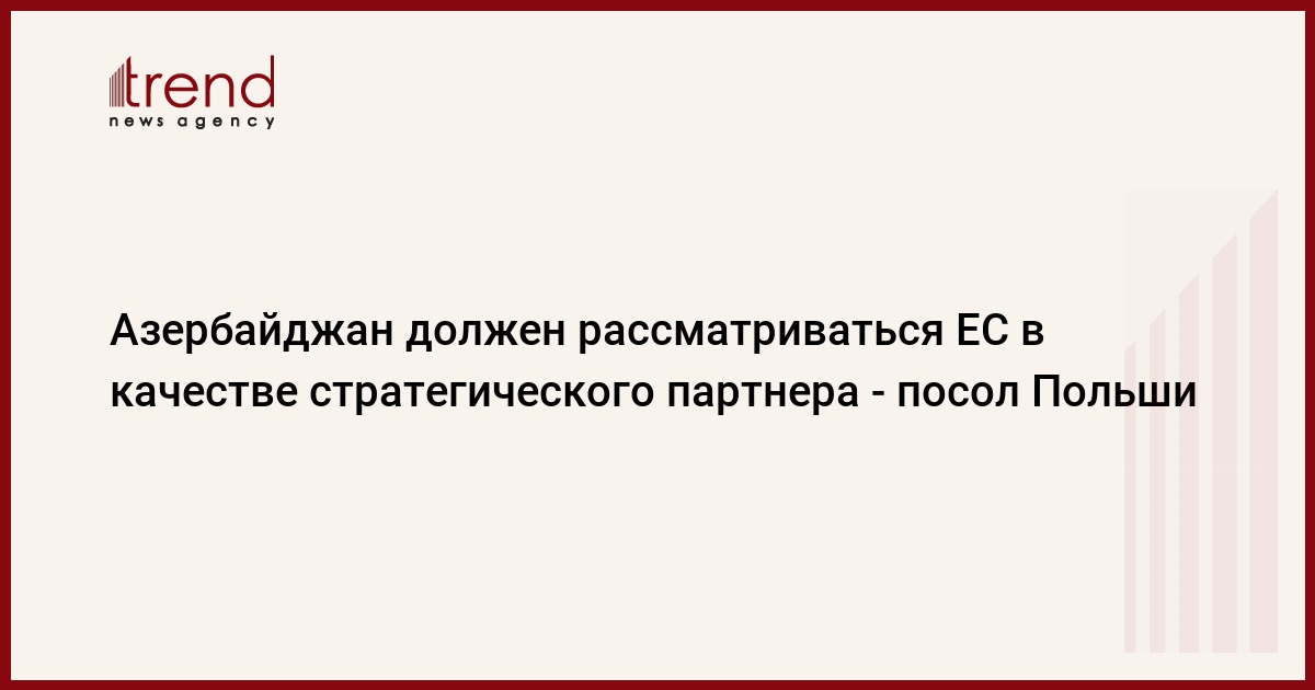 Азербайджан должен рассматриваться ЕС в качестве стратегического партнера - посол Польши