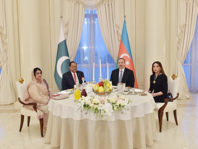 На приеме присутствовали первая леди Азербайджана Мехрибан Алиева и супруга Президента Пакистана Мехмуда Мамнун.