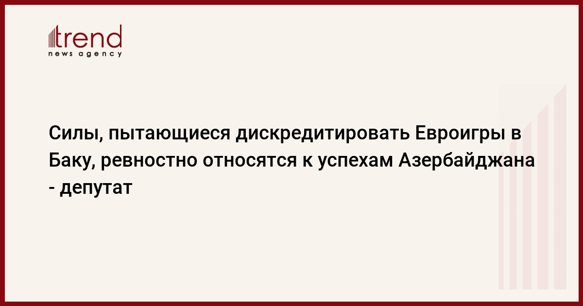 По его словам, эти силы постоянно проводят кампании против Азербайджана и таким образом пытаются принизить авторитет страны в мировом сообществе. "Кампания, проводимая против первых Евроигр, является очередным шагом в реализации этих целей. В преддверии музыкального конкурса "Евровидение" в Баку также проводилась подобная кампания, однако Азербайджан доказал, что способен принимать гостей, проводить самые авторитетные мероприятия", - сказал депутат.