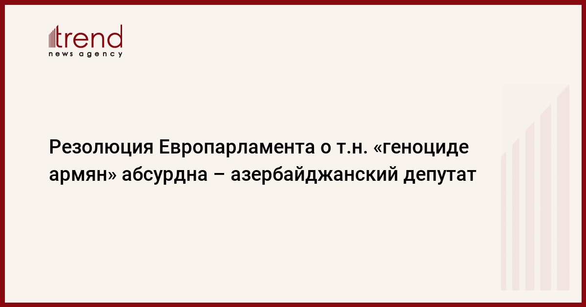 Принятая Европарламентом резолюция по т.н. "армянскому геноциду" безосновательна, предвзята, несерьезна и является наглядным примером двойных стандартов. Об этом сказал Trend в четверг глава пресс-службы МИД Азербайджана Хикмет Гаджиев, комментируя принятую накануне Европарламентом резолюцию.