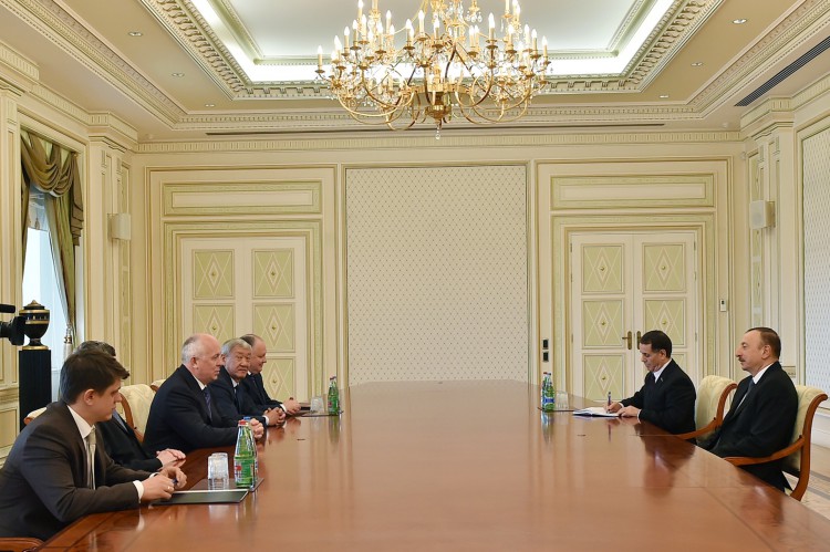 БАКУ /Trend/ - Президент Азербайджана Ильхам Алиев в понедельник принял делегацию, возглавляемую генеральным директором российской государственной корпорации "Ростех" Сергеем Чемезовым.