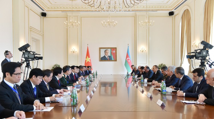 В ходе беседы была высоко оценена помощь Азербайджана Вьетнаму в советский период, в частности, содействие в подготовке кадров для нефтегазовой отрасли, отмечена важность продолжения этих традиций. Было подчеркнуто продолжение успешного сотрудничества в международных организациях, отмечен рост торгового оборота между странами. Стороны констатировали, что сотрудничество в нефтегазовой отрасли имеет прекрасные перспективы. С учетом того, что Азербайджан обладает хорошим опытом в области градостроения и инфраструктуры, было подчеркнуто значение обмена опытом с нашей страной в области градостроительства, инфраструктуры и транспорта. Состоялся обмен мнениями о перспективах сотрудничества в области образования, подготовки кадров, строительства, инфраструктуры, туризма, спорта, в гуманитарной и других сферах. Было подчеркнуто, что для расширения связей в этих сферах имеются хорошие перспективы.