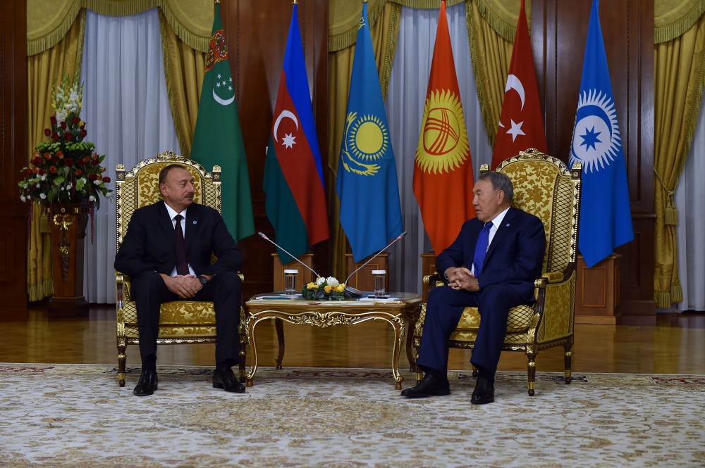 Вы прибыли для участия в Саммите тюркоязычных стран. Сегодня любезно приняли участие в наших серьезных мероприятиях, когда мы посмотрели на свою историю, на свои истоки. Это было очень приятно видеть в этом зале всем казахстанцам руководителя братского азербайджанского народа", - сказал президент Казахстана.