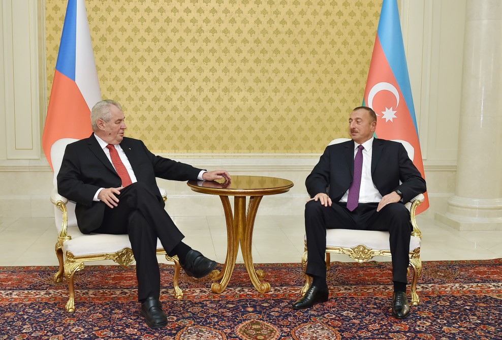 БАКУ /Trend/ - Во вторник после церемонии официальной встречи состоялась встреча один на один Президента Азербайджана Ильхама Алиева и Президента Чехии Милоша Земана.