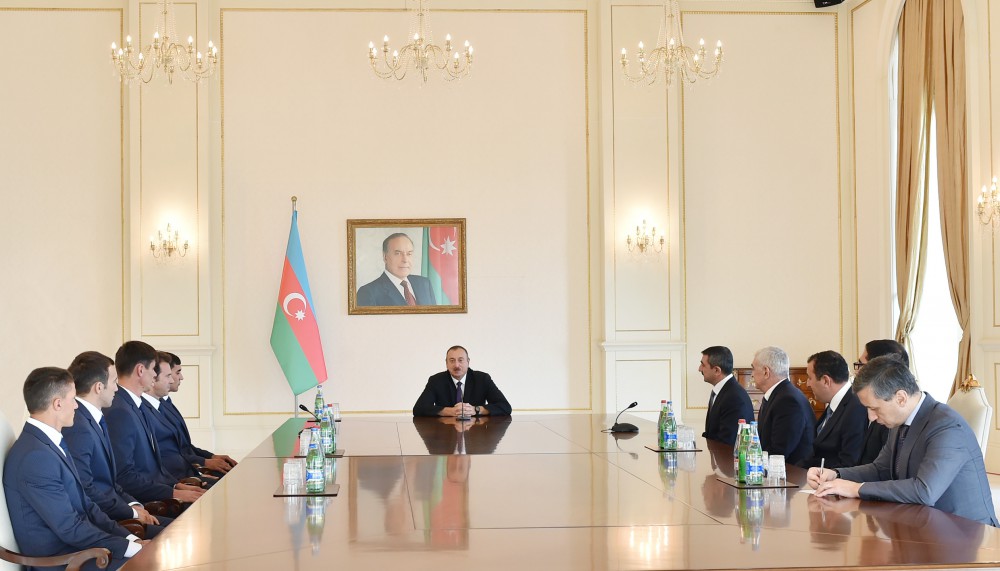 БАКУ /Trend/ - Президент Азербайджана Ильхам Алиев в пятницу встретился с членами сборной команды Азербайджана по поло, ставшей победителем первого чемпионата Европы, проведенного в Баку.