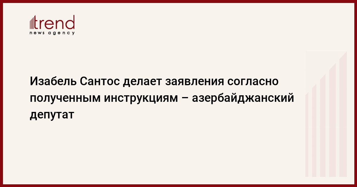 БАКУ /Trend/ - Изабель Сантос делает свои заявления в соответствии с полученными ею инструкциями, что вызывает чувство сожаления. Несмотря на неоднократные протесты, на призывы быть справедливой и объективной, Изабель Сантос продолжает занимать необоснованную и предвзятую позицию в отношении Азербайджана.