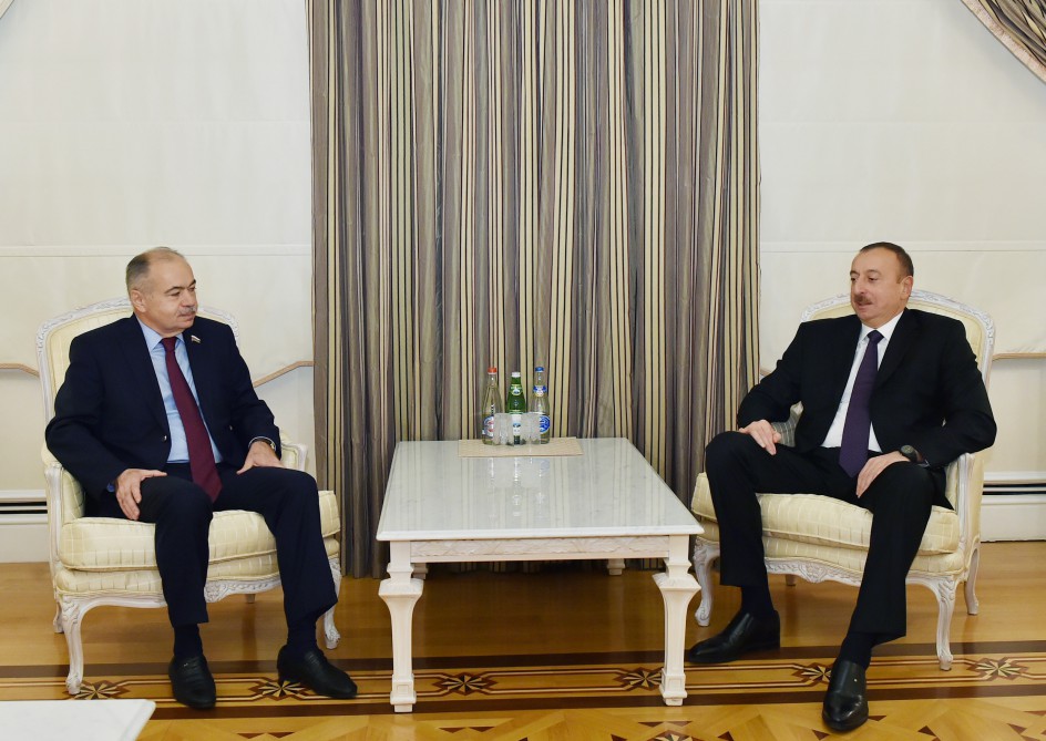 БАКУ /Trend/ - Президент Азербайджана Ильхам Алиев в воскресенье принял заместителя председателя Совета Федерации Федерального собрания России Ильяса Умаханова.