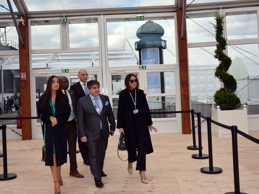 Первую леди Мехрибан Алиеву и Лейлу Алиеву встретил генеральный секретарь Конференции СОР21, посол Пьер-Анри Гиньяр.