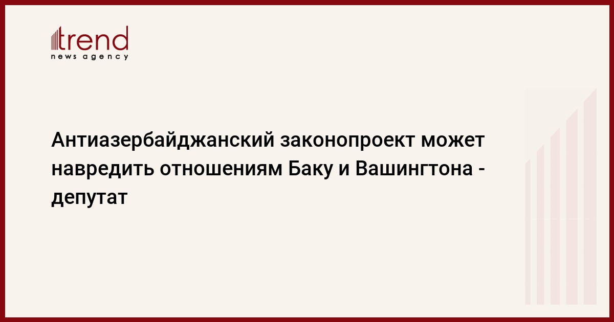БАКУ /Trend/ - Антиазербайджанский законопроект США может вызвать напряженность в отношениях между Баку и Вашингтоном, считает депутат парламента страны Фуад Мурадов.