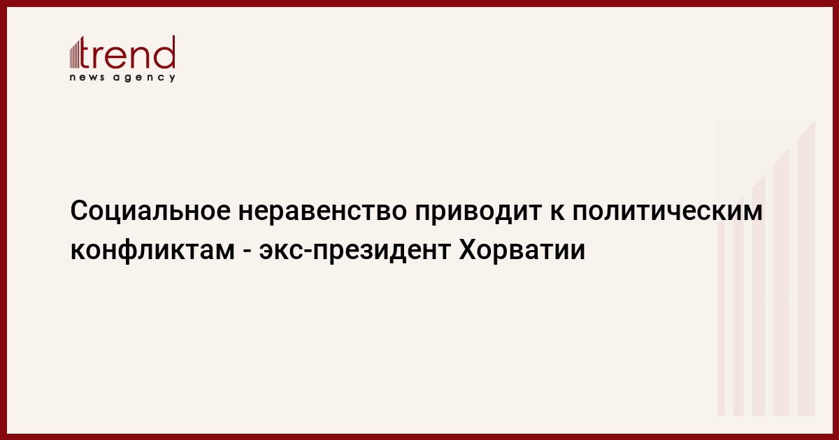БАКУ /Trend/ - В основе конфликтов лежит существующее в странах неравенство, и это оказывает влияние на все регионы, сказал в пятницу экс-президент Хорватии Иво Йосипович на панельных обсуждениях на тему "От неравномерного разделения мира к единому обществу" в рамках IV Глобального Бакинского форума на тему "К многополярному миру". Модератором обсуждений стал президент общества Международный Зеленый Крест Александр Лихоталь.