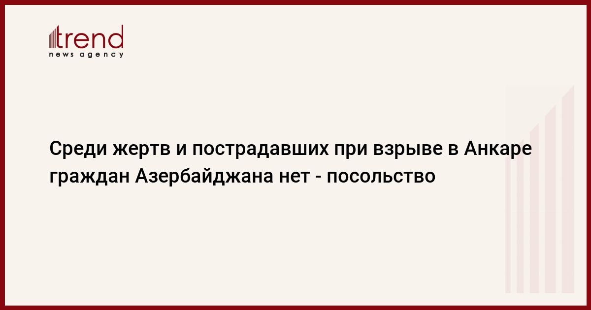 Информацию об отсутствии граждан Азербайджана среди жертв и пострадавших при взрыве в Анкаре подтвердили посольству в министерствах внутренних дел и здравоохранения Турции.