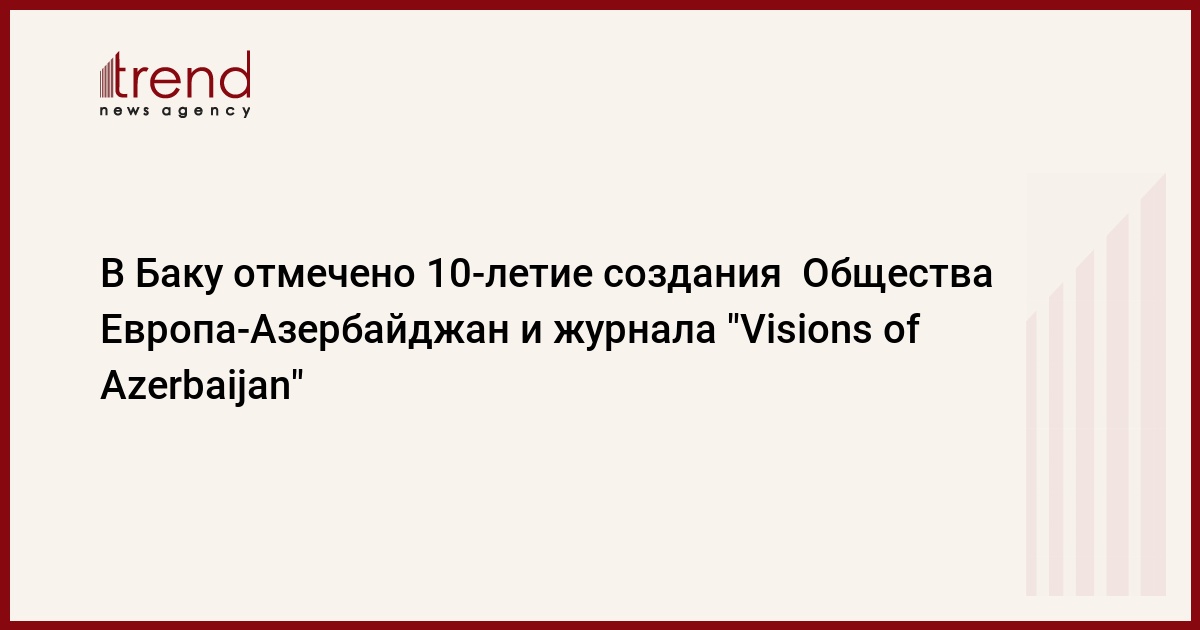 БАКУ /Trend/ - Сегодня в Баку было торжественно отмечено 10-летие создания Общества Европа-Азербайджан и журнала "Visions of Azerbaijan".