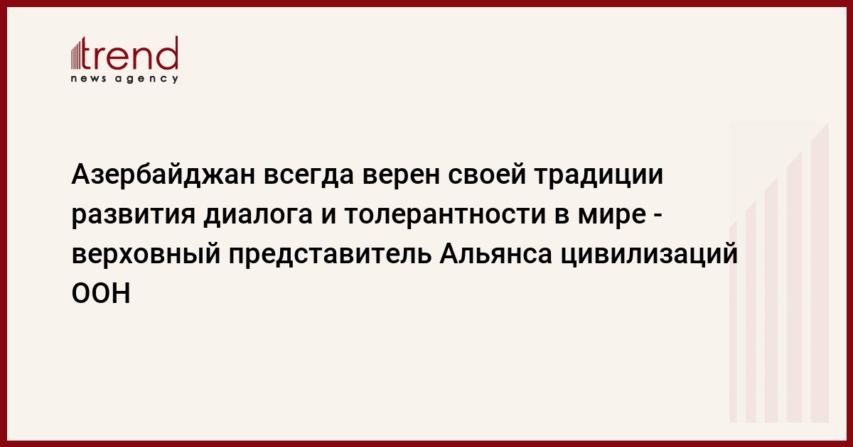 БАКУ /Trend/ - Азербайджан всегда оставался верен своей традиции развития диалога и толерантности в мире путем межкультурной интеграции, сказал в пятницу журналистам верховный представитель Альянса цивилизаций ООН Нассир Абдулазиз аль-Нассер.