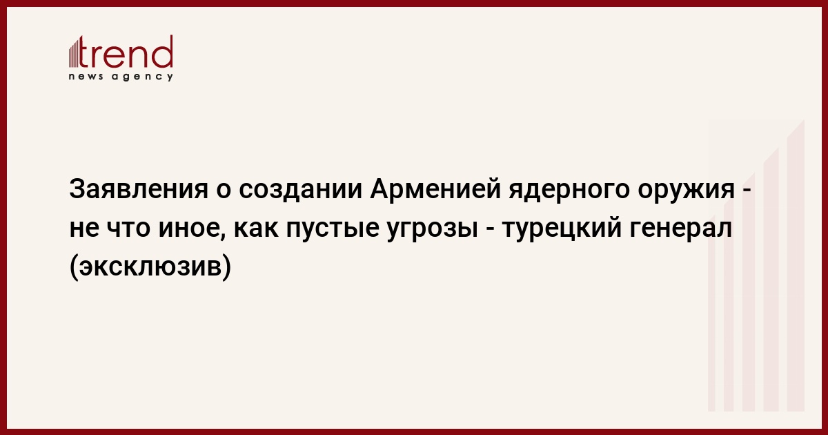 БАКУ /Trend/ - Разговоры о якобы имеющейся у Армении возможности для создания ядерного оружия являются ничем иным, как пустыми угрозами, сказал Trend в среду генерал-лейтенант турецкой армии в отставке Эрмаган Кулоглу.