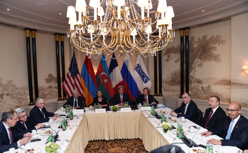 БАКУ/Trend/ - 16 мая в Вене состоялась встреча с участием Президента Азербайджанской Республики Ильхама Алиева, Президента Республики Армения Сержа Саргсяна, государственного секретаря США Джона Керри, министра иностранных дел Российской Федерации Сергея Лаврова, государственного секретаря Французской Республики по вопросам Европы Харлема Десира, сопредседателей Минской группы ОБСЕ, специального представителя действующего председателя ОБСЕ Анджея Каспшика.