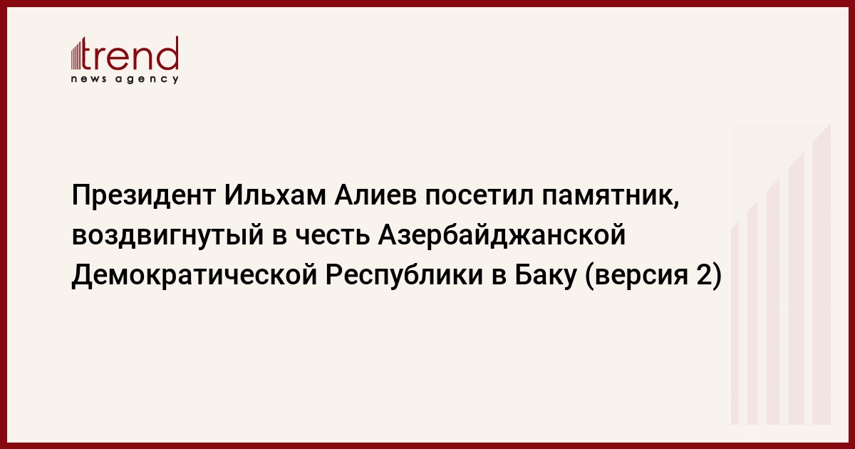 БАКУ /Trend/ - 27 мая Президент Азербайджанской Республики Ильхам Алиев по случаю Дня Республики посетил памятник, возведенный на улице Истиглалийят в Баку в честь Азербайджанской Демократической Республики.