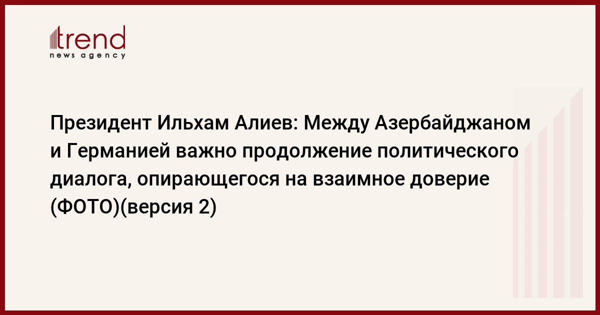Глава государства подчеркнул важность продолжения политического диалога между Азербайджаном и Германией, опирающегося на взаимное доверие, сказал, что существуют хорошие возможности для сотрудничества в энергетической, транспортной сферах, сфере безопасности и других.