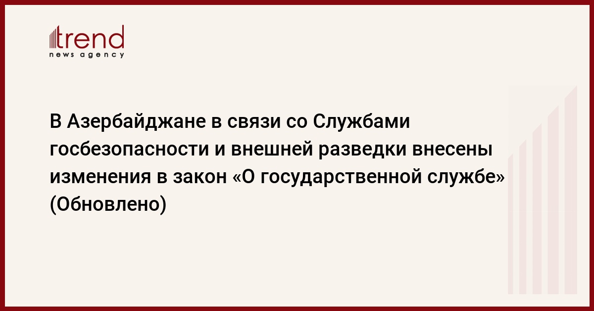 Согласно изменениям, сотрудникам Службы государственной безопасности и Службы внешней разведки Азербайджана присваивается статус госслужащих. Следует отметить, что в соответствии с действующей статьей 2.3 закона «О государственной службе» прохождение государственной службы лицами, занятыми на государственной службе в органах прокуратуры, юстиции, национальной безопасности, обороны, чрезвычайных ситуаций, пограничной службы, миграционной службы, внутренних дел, таможни, налогов, иностранных дел и фельдъегерской связи, в Центральном банке Азербайджана, регулируется иными законами Азербайджанской Республики с учетом положений, касающихся права граждан Азербайджана на прием на государственную службу, осуществления приема на государственную службу на основе конкурса и прозрачности, оценки деятельности государственных служащих и других принципов государственной службы, и служба в этих органах является особым видом государственной службы.