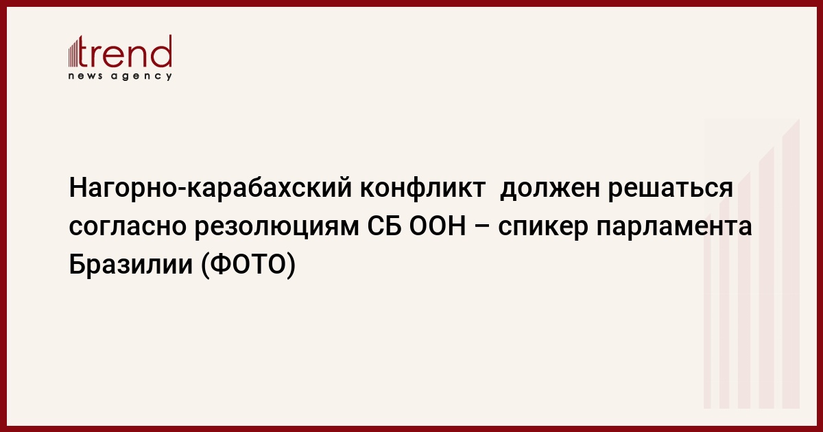 БАКУ /Trend/ - Бразилия - сторонница решения армяно-азербайджанского нагорно-карабахского конфликта на основании резолюций Совета безопасности ООН. Об этом председатель Палаты депутатов Национального конгресса Бразилии Родриго Мая, находящийся с визитом в Азербайджане, сказал во время встречи с председателем Милли Меджлиса (парламента) Огтаем Асадовым.