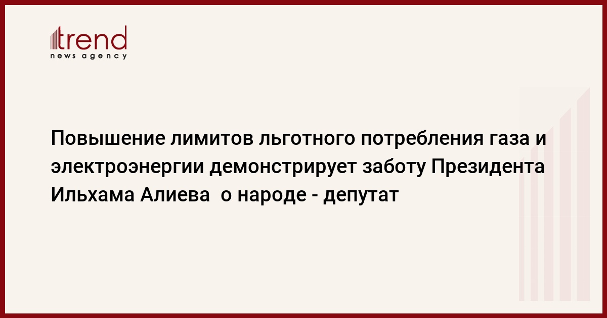 БАКУ /Trend/ - Повышение лимитов льготного потребления газа и электроэнергии по поручению Президента Азербайджана Ильхама Алиева демонстрирует проявляемую главой государства заботу о народе, сказал Trend в четверг депутат Милли Меджлиса (парламента) Фазаиль Агамалы
