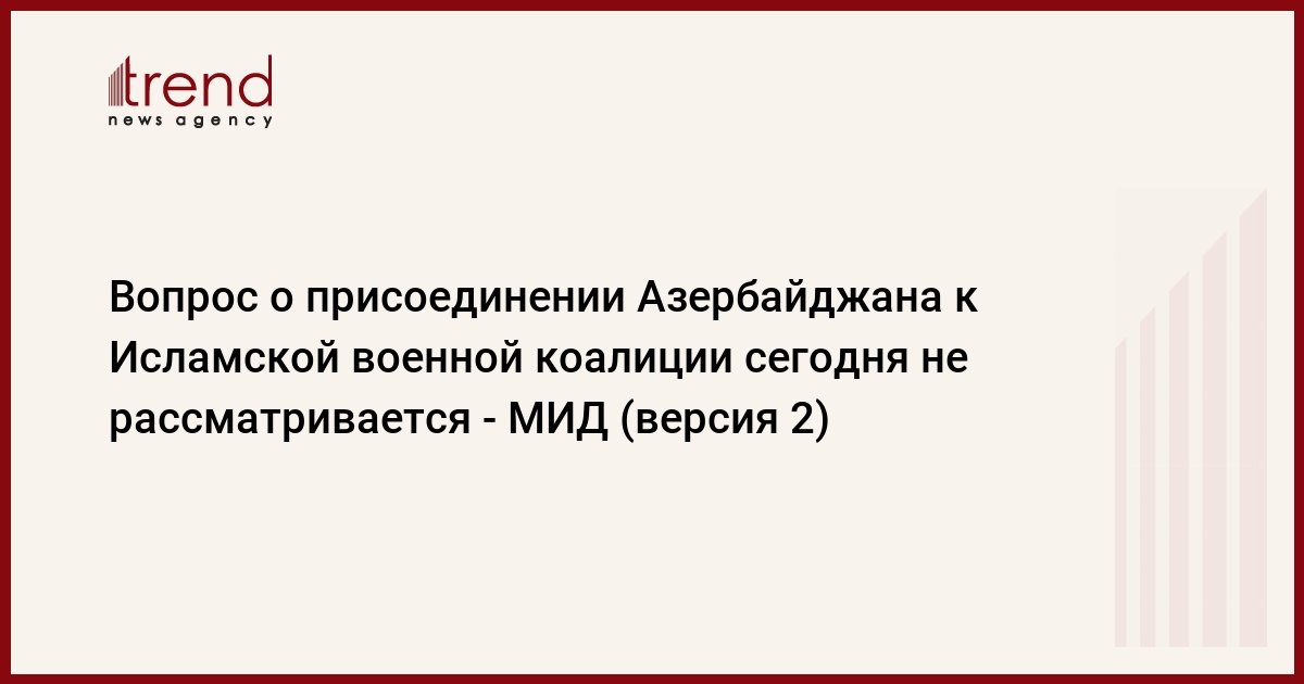Ранее в СМИ была распространена информация о присоединении Азербайджана в исламской военной коалиции.