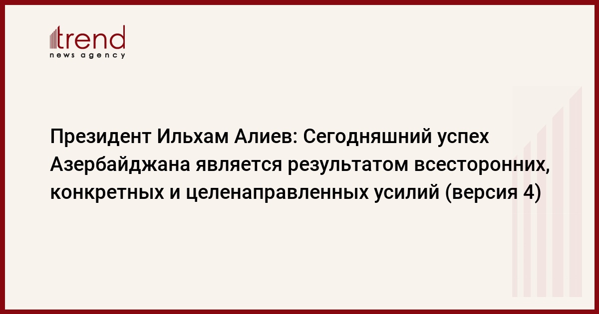 Сегодняшний успех Азербайджана является результатом всесторонних, конкретных и целенаправленных усилий последних нескольких лет. Реализация глобально значимых проектов в различных секторах экономики, включая энергетику, не только повысила потенциал страны, но также способствует региональному и международному сотрудничеству, отмечает глава государства.