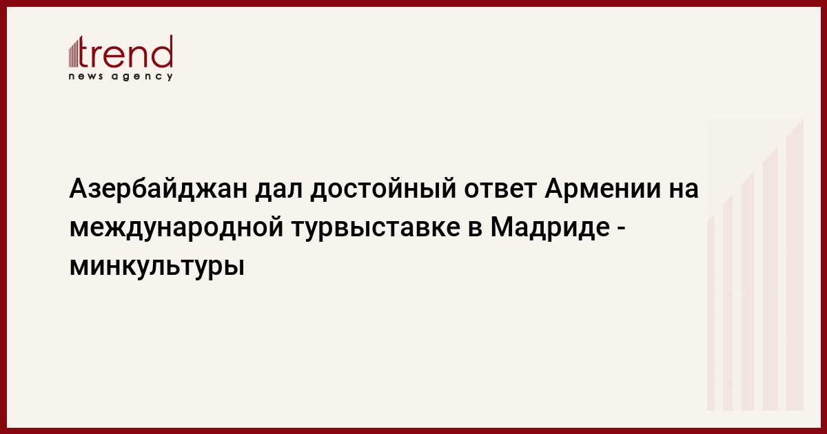 БАКУ /Trend/ - Азербайджан дал достойный ответ на очередную провокацию Армении на международной туристической выставке FİTUR в Мадриде, говорится в заявлении, распространенном в понедельник министерством культуры и туризма.