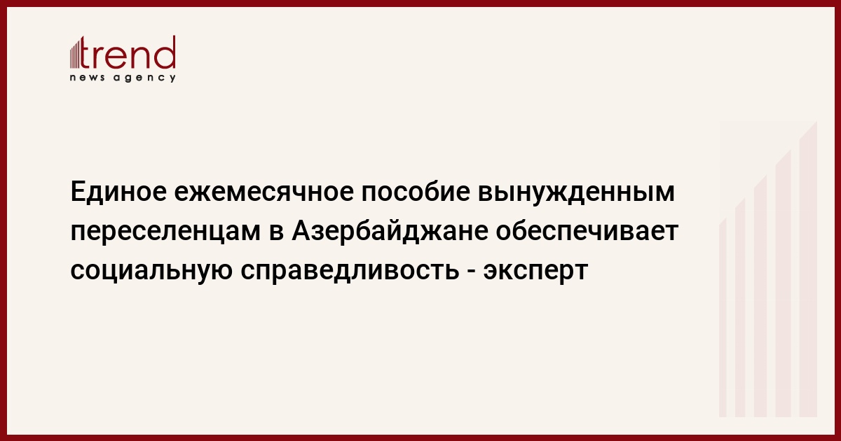 БАКУ /Trend/ - Указ Президента Ильхама Алиева о едином ежемесячном пособии вынужденным переселенцам и приравненным к ним лицам обеспечивает социальную справедливость, сказал Trend во вторник политический эксперт Бахруз Гулиев.