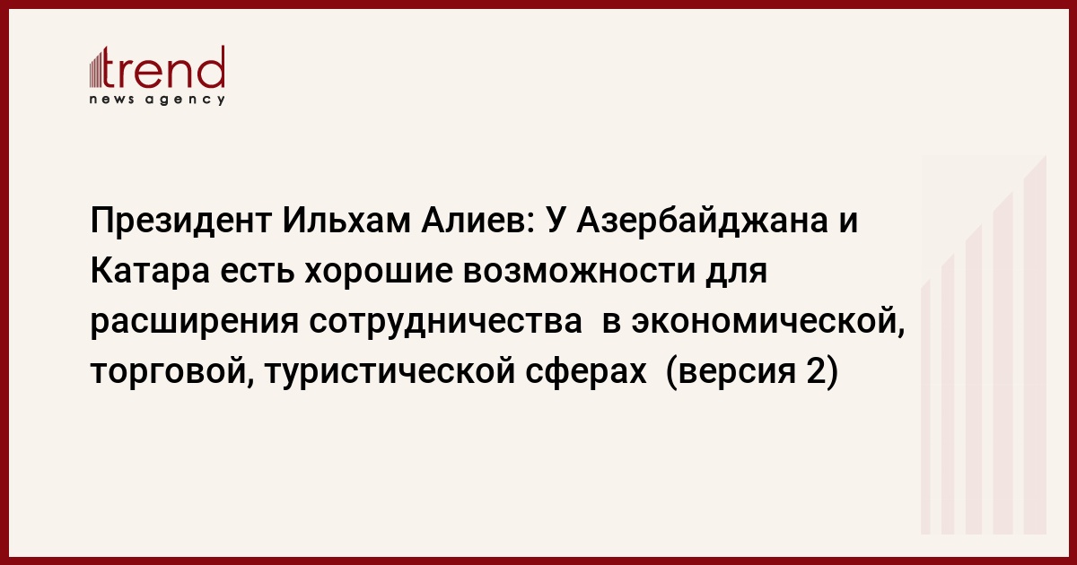 Президент Азербайджана сказал, что с нетерпением ждет своего визита в Катар, отметил значение отношений личной дружбы с Эмиром Катара Шейхом Тамимом бин Хамадом Аль-Тани с точки зрения укрепления дружбы между народами двух стран.