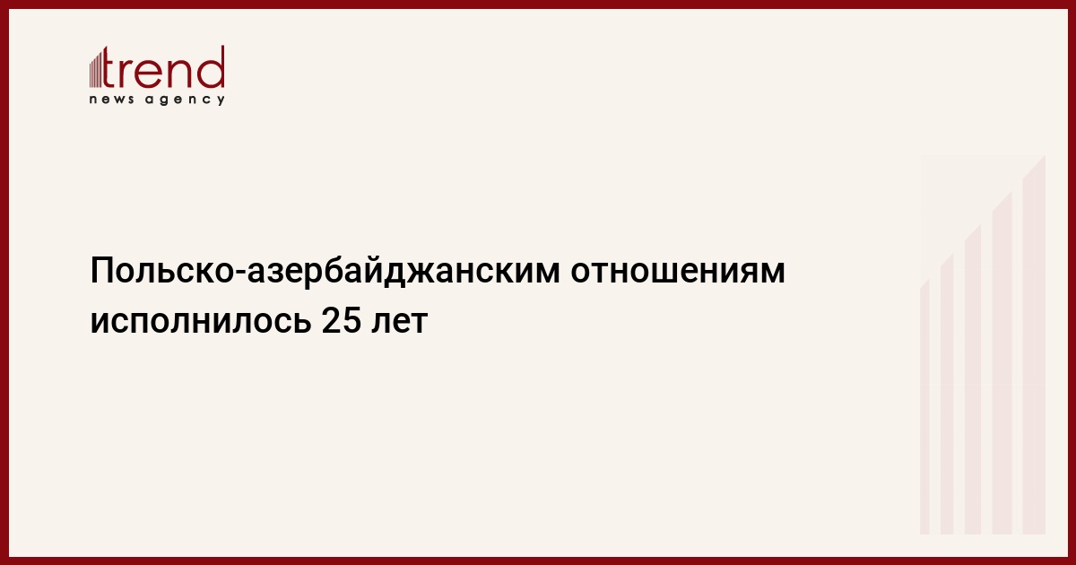 БАКУ /Trend/ - 21 февраля исполнилось 25 лет существования польско-азербайджанских отношений. 24 января 1992 года правительство Польши признало Азербайджанскую Республику в качестве суверенного и независимого государства, а также выразило готовность к установлению с ней межгосударственных отношений, говорится в сообщении посольства Польши в Азербайджане. 21 февраля 1992 г. Правительство Азербайджанской Республики положительно откликнулось на данные предложения.