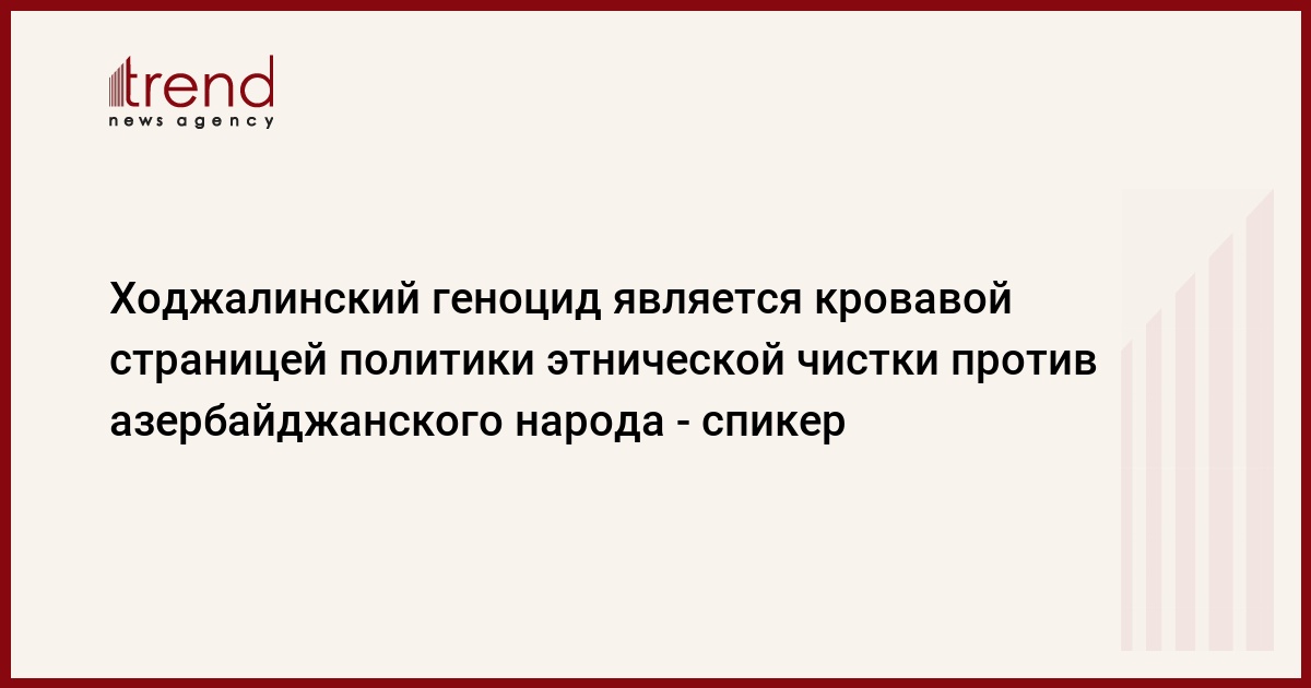 БАКУ /Trend/ - Ходжалинский геноцид является кровавой страницей политики этнической чистки и геноцида, проводимой против азербайджанского народа, сказал в пятницу спикер Милли Меджлиса Азербайджана Огтай Асадов на заседании парламента, посвященном 25-й годовщине трагедии в Ходжалы.
