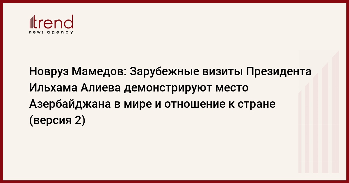 БАКУ /Trend/ - Зарубежные визиты Президента Азербайджана Ильхама Алиева демонстрируют место Азербайджана в мире и отношение к стране. Об этом в субботу сказал журналистам заместитель руководителя Администрации Президента Азербайджана, заведующий отделом по внешним связям Новруз Мамедов.