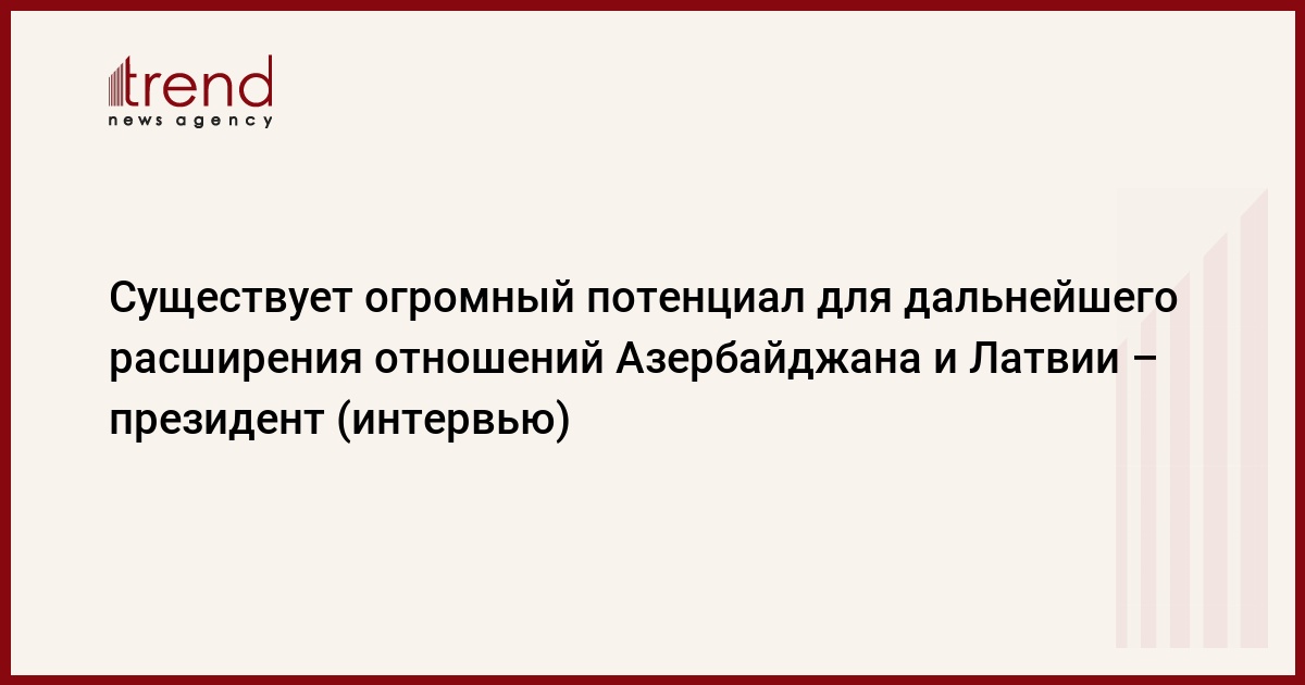 БАКУ /Trend/ - Латвия высоко ценит открытый и конструктивный диалог между лидерами двух стран, а также парламентариями, правительствами, сказал в понедельник в эксклюзивном интервью Trend президент Латвии Раймондс Вейонис.