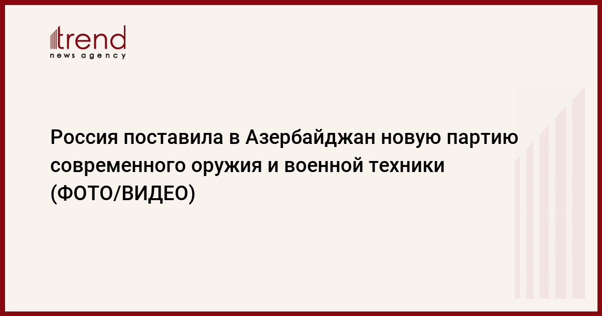 БАКУ /Trend/ - В Азербайджан, согласно подписанному соглашению о военно-техническом сотрудничестве с Россией, доставлена очередная партия боеприпасов и новейшей военной техники различного назначения, сообщает в среду пресс-служба министерства обороны Азербайджана.