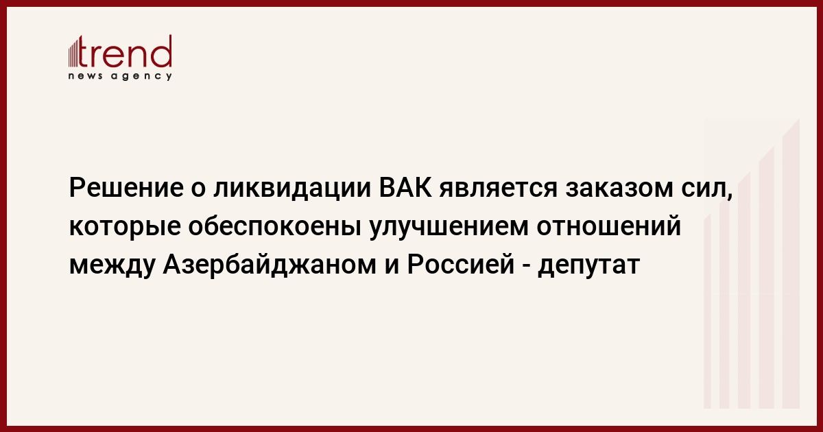 "Цель этой структуры заключалась в оказании поддержки улучшению отношений Азербайджана с Россией. Эта структура является не только объединением азербайджанцев, проживающих в России. Конгресс является платформой, объединяющей как российских, так и азербайджанских представителей интеллигенции. Правда, это решение является внутренним делом России. Однако, ликвидация регистрации структуры без серьезной причиной не может восприниматься как естественный процесс. По законам России, если недостатки в документах какой-либо организации противоречат интересам России, в этом случае деятельность этой структуры может быть приостановлена. Если не противоречат интересам страны, то документы организации должны быть приведены в соответствующий закону вид. Недостающие документы для функционирования ВАК не причиняют ущерб интересам России", - сказал депутат.