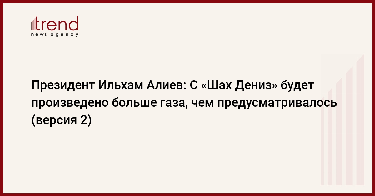 БАКУ /Trend/ - С месторождения «Шах Дениз» будет добыто больше газа, чем предусматривалось, сказал в четверг Президент Азербайджана Ильхам Алиев, выступая на встрече с рабочим коллективом проекта в рамках участия в церемонии отправки со строительно-монтажного участка «Азфен» в Бибиэйбате на контрактную площадь "Шах Дениз" в Каспийском море одной из двух платформ, построенных для «Шах Дениз 2» - верхних строений платформы жилых блоков и технологического обеспечения.