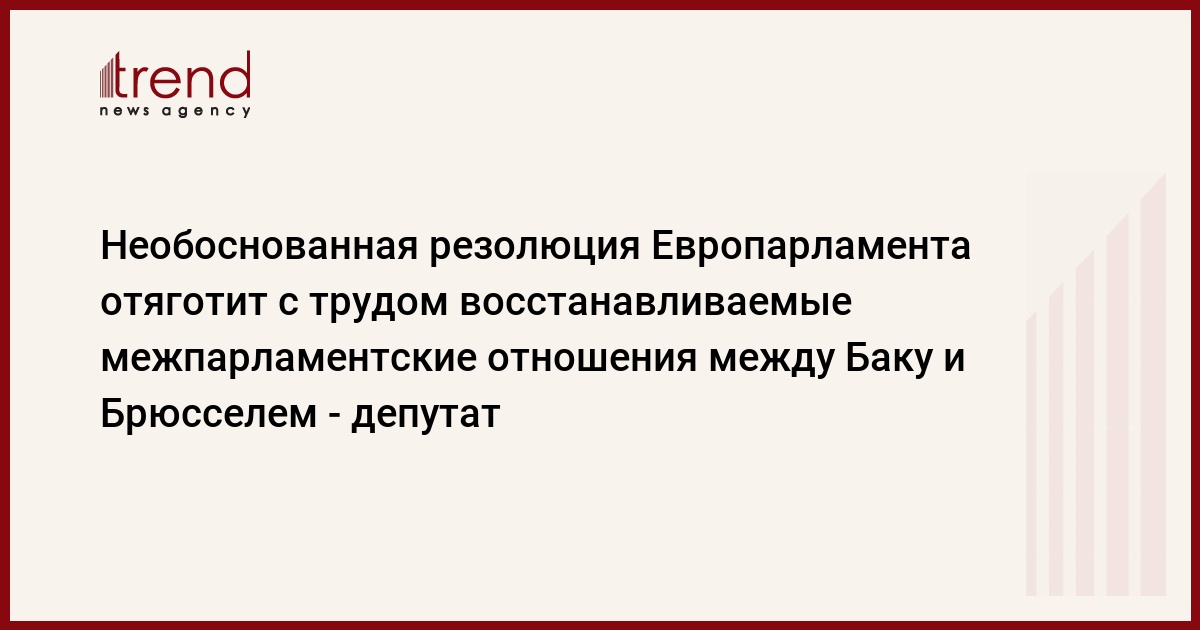 БАКУ /Trend/ - Принятая Европарламентом необоснованная резолюция о нарушении прав журналистов в Азербайджане привнесет ненужную напряженность и будет отягощать с таким трудом восстанавливаемые межпарламентские отношения между Баку и Брюсселем. Об этом Trend в пятницу сказал депутат Милли Меджлиса (парламента) Расим Мусабеков, комментируя решение Европарламента, принятое после ареста Афгана Мухтарлы.