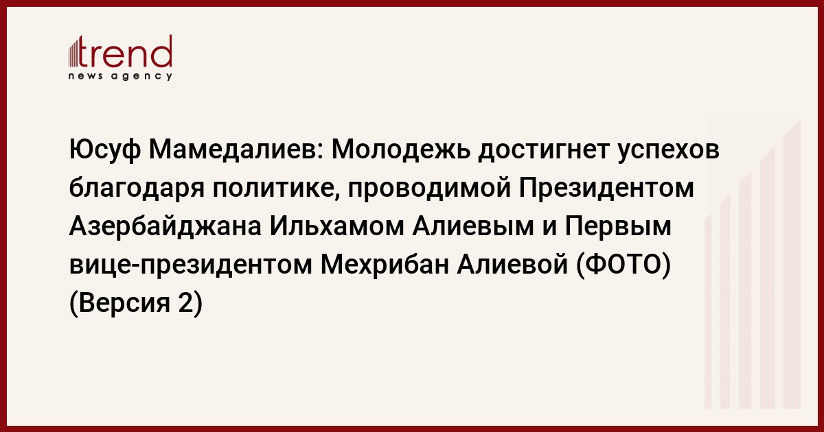 Юсуф Мамедалиев подчеркнул, что именно молодежь достигнет успехов благодаря политике, проводимой Президентом Азербайджана и Первым вице-президентом Мехрибан Алиевой».