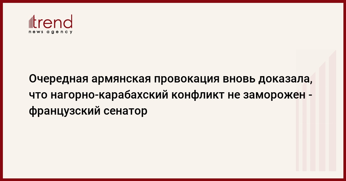 БАКУ /Trend/ - Очередная армянская провокация вновь доказала, что нагорно-карабахский конфликт не заморожен, говорится в заявлении председателя группы дружбы Франция-Кавказ, сенатора Андре Решара в связи с обстрелом вооруженными силами Армении мирных граждан Азербайджана в селе Алханлы Физулинского района, в результате которого погибли двухлетняя девочка и ее бабушка.