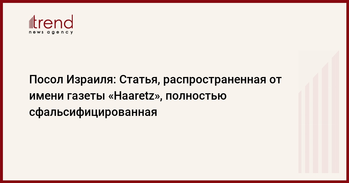БАКУ/ Trend/ - Посол Израиля в Азербайджане Дан Став выступил с заявлением в связи со статьей о нашей стране, размещенной на сайте газеты «Haaretz», передает АзерТАдж.