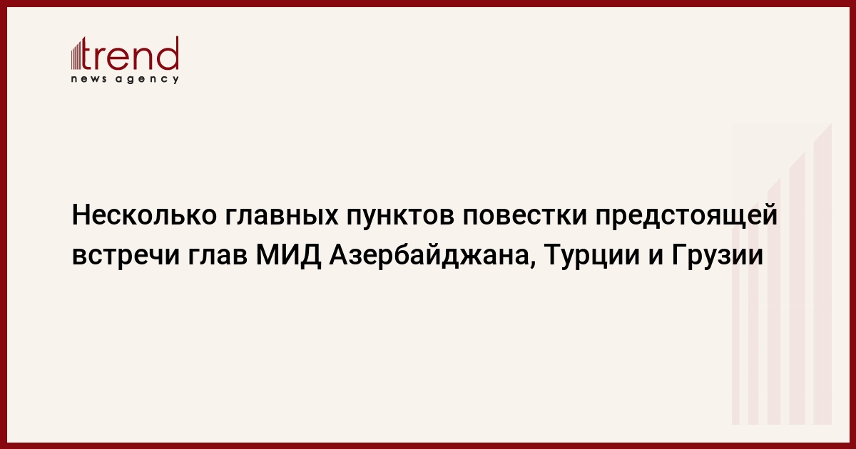 БАКУ /Trend/ – Главными вопросами повестки предстоящей встречи глав МИД Азербайджана, Турции и Грузии в Баку - Эльмара Мамедъярова, Мевлюта Чавушоглуа и Михеила Джанелидзе, станут пункты геополитического сотрудничества, которое успешно развивается в последние годы, принося выгоду всем трем странам, а также экономические, энергетические, транспортные вопросы и проблемы региональной безопасности. Основа министериала была заложена еще в 2012 года в турецком городе Трабзон в рамках подписанной главами внешнеполитических ведомств трех стран Трабзонской декларации, отражающей важнейшие направления взаимного сотрудничества Азербайджана, Турции и Грузии в ряде сфер.