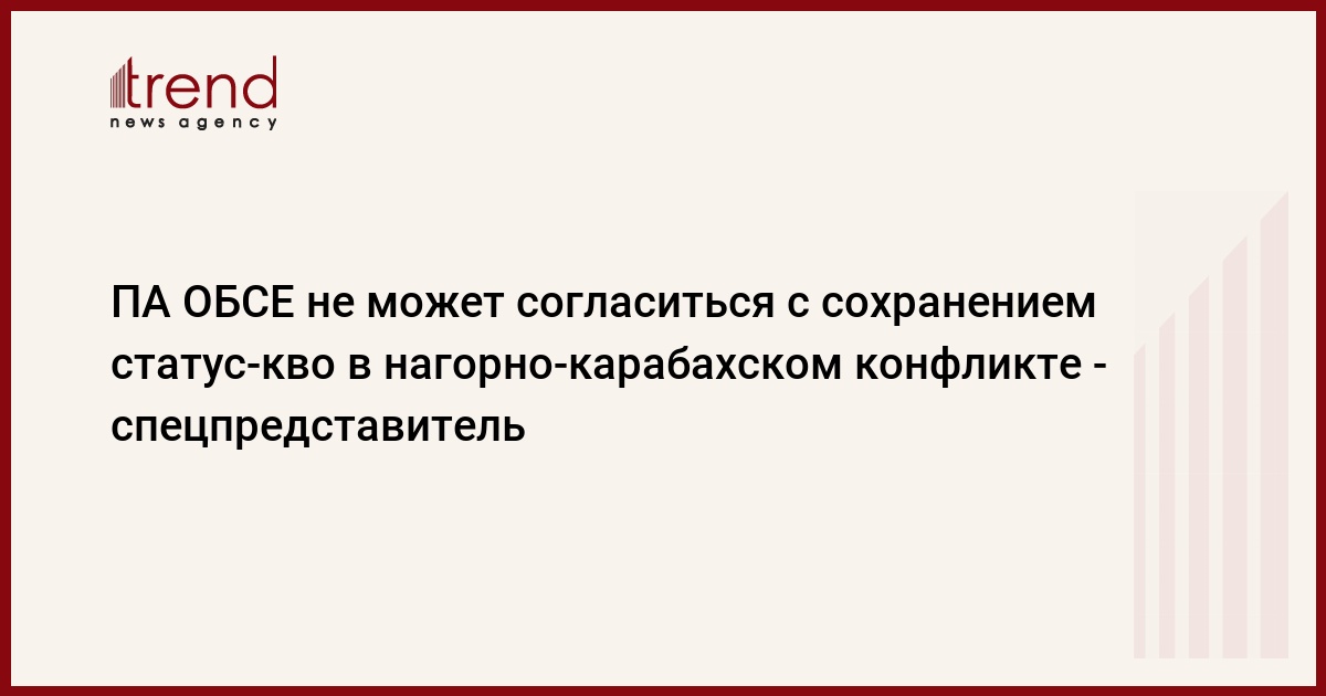 «Визит председателя ПА ОБСЕ Кристин Муттонен в регион в начале сентября еще раз подтверждает это. Мы должны принять все возможные меры в связи с урегулированием нагорно-карабахского конфликта. Мы готовы поддержать любые шаги, которые могут быть предприняты для решения проблемы мирным путем. Мы не можем согласиться с сохранением существующего статус-кво и закрывать глаза на эту проблему. Мы должны добиться решения проблемы», - сказал спецпредставитель ПА ОБСЕ.