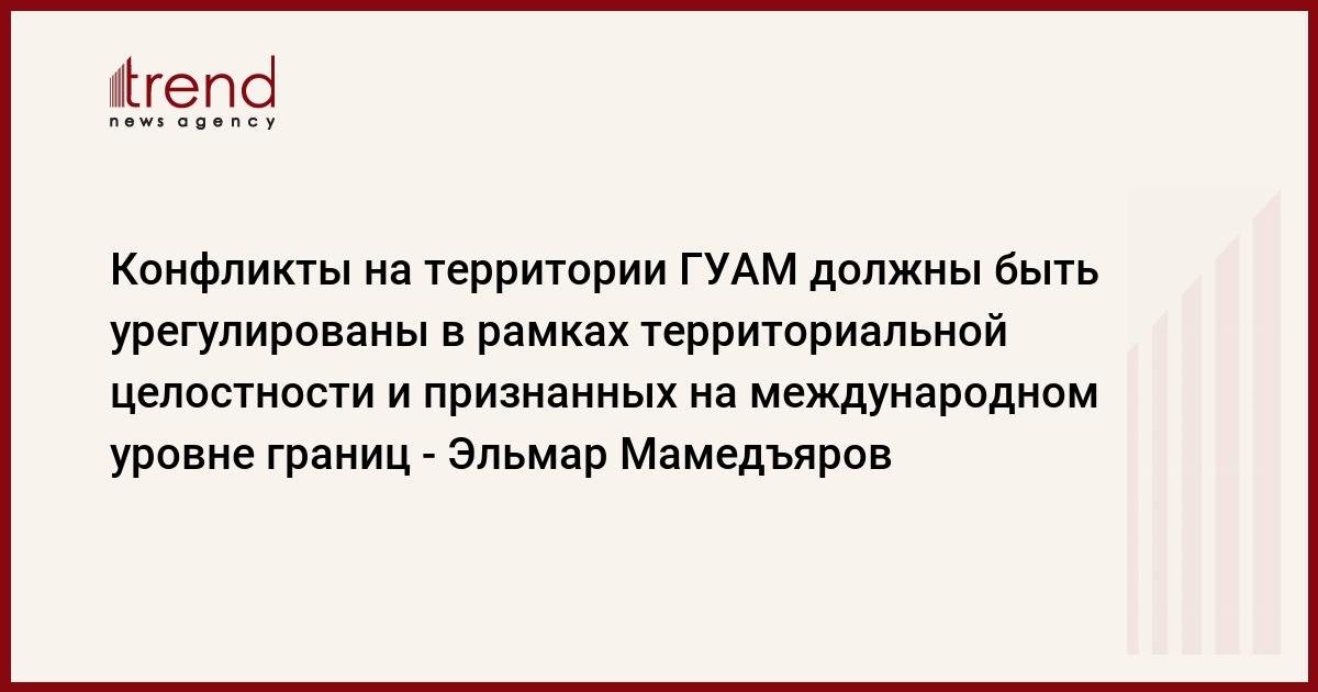 Коснувшись затянувшихся конфликтов на территории стран-членов ГУАМ министр Эльмар Мамедъяров подчеркнул, что эти конфликты должны быть урегулированы на основе принципов суверенитета, территориальной целостности и неприкосновенности признанных на международном уровне границ.