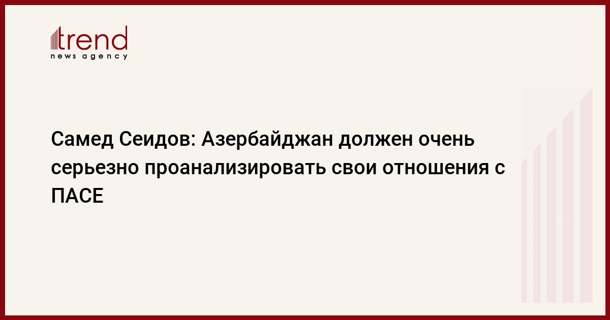 Сеидов добавил, что эти нападки на страну связаны с успешной политикой Азербайджана. «Эти силы ведут борьбу с успешной политикой. Мы очень серьезно должны проанализировать свои отношения с ПАСЕ. Если станет очевидно, что в Совете Европы идут неприятные процессы против Азербайджана, то стране необходимо будет продемонстрировать свою решительную позицию», - сказал он.