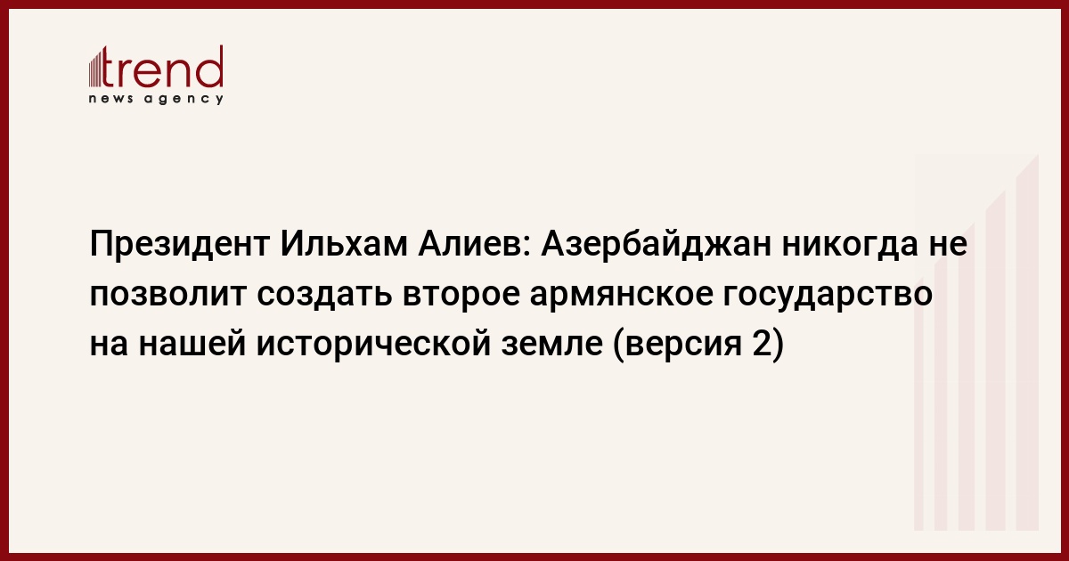 БАКУ /Trend/ - Азербайджанское государство и народ никогда не позволят, чтобы на нашей исторической земле было создано второе армянское государство.