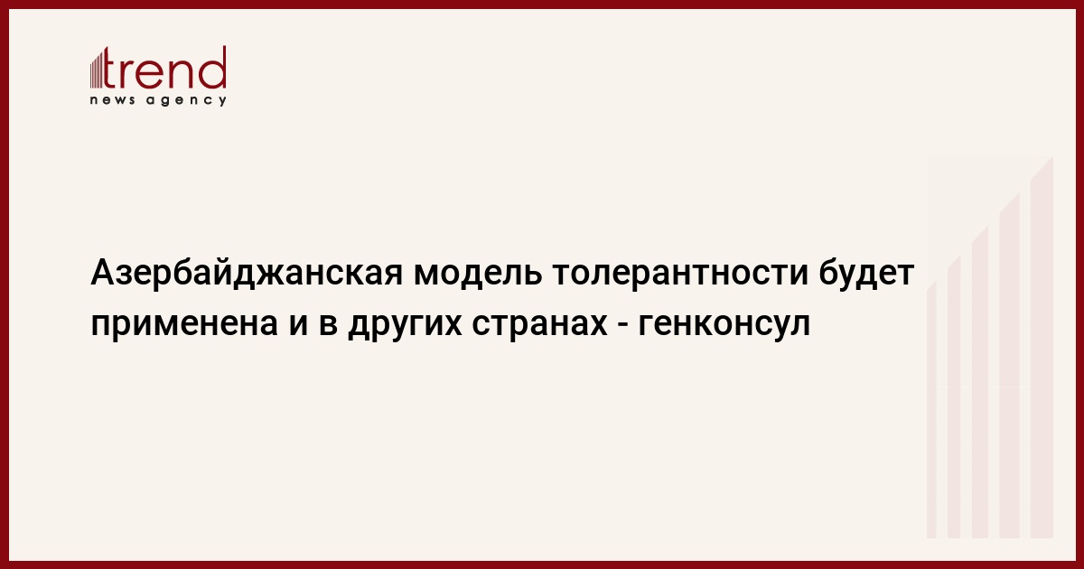 БАКУ /Trend/ - Азербайджанская модель межнационального и межрелигиозного мира, гармонии, взаимопонимания и толерантности будет применена и в других странах.